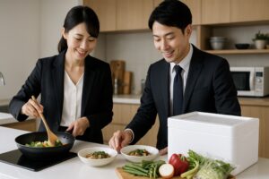 ミールキットなら、下ごしらえ済みの食材が届き、20〜30分程度で調理が完了する想定が一般的です。「今日は子供と一緒にキッチンに立つ日」を作ると、食育にもつながります。