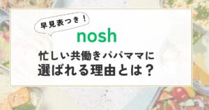 nosh(ナッシュ)は冷凍宅配弁当サービスで、健康志向の共働き家庭から人気を集めています。糖質30g以下・塩分2.5g以下に設計された食事が多く、レンジで5分温めるだけで栄養バランスを意識した夕食が完成します。
